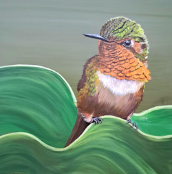 Con más de 300 especies de colibríes en América, me propuse capturar la esencia de algunos de mis favoritos y los pinté en un tamaño lo suficientemente grande como para que puedas llevar su energía y asombro a tu espacio. Cada colibrí tiene su propio brillo único, y mi obra busca celebrar sus colores, movimiento y espíritu de una manera que perdure para siempre. Poseer una de estas pinturas es más que decorar tus paredes: es atesorar un momento mágico, una obra de arte de la naturaleza y un símbolo de alegría, resiliencia y transformación.